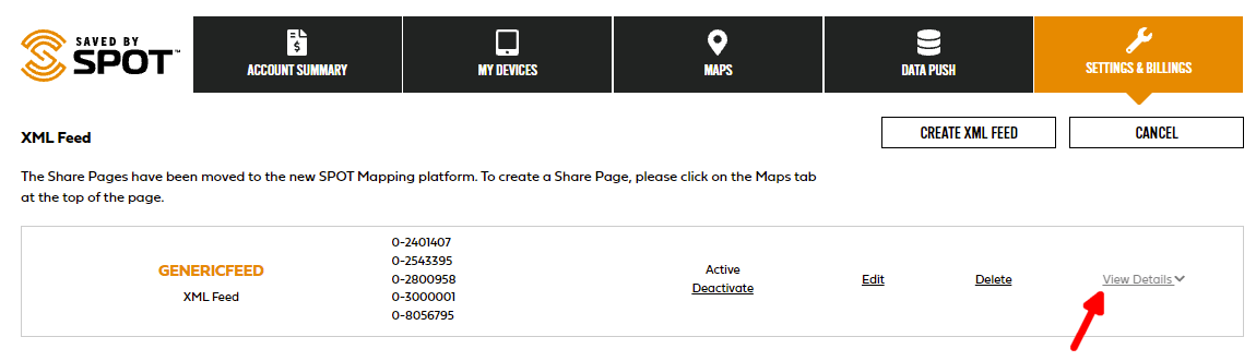 The SPOT XML Feed is built upon an XML data stream that is enabled when a new xml feed is created.
