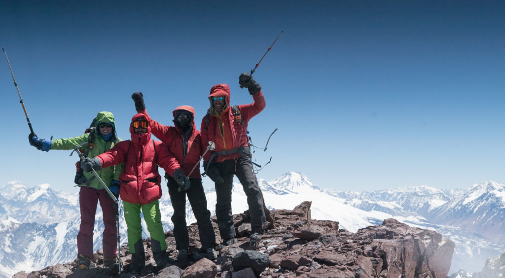 O grupo completo no cume do Marmolejo (Suzie, Jovani, Eu e Maximo) | Foto: Gabriel Tarso