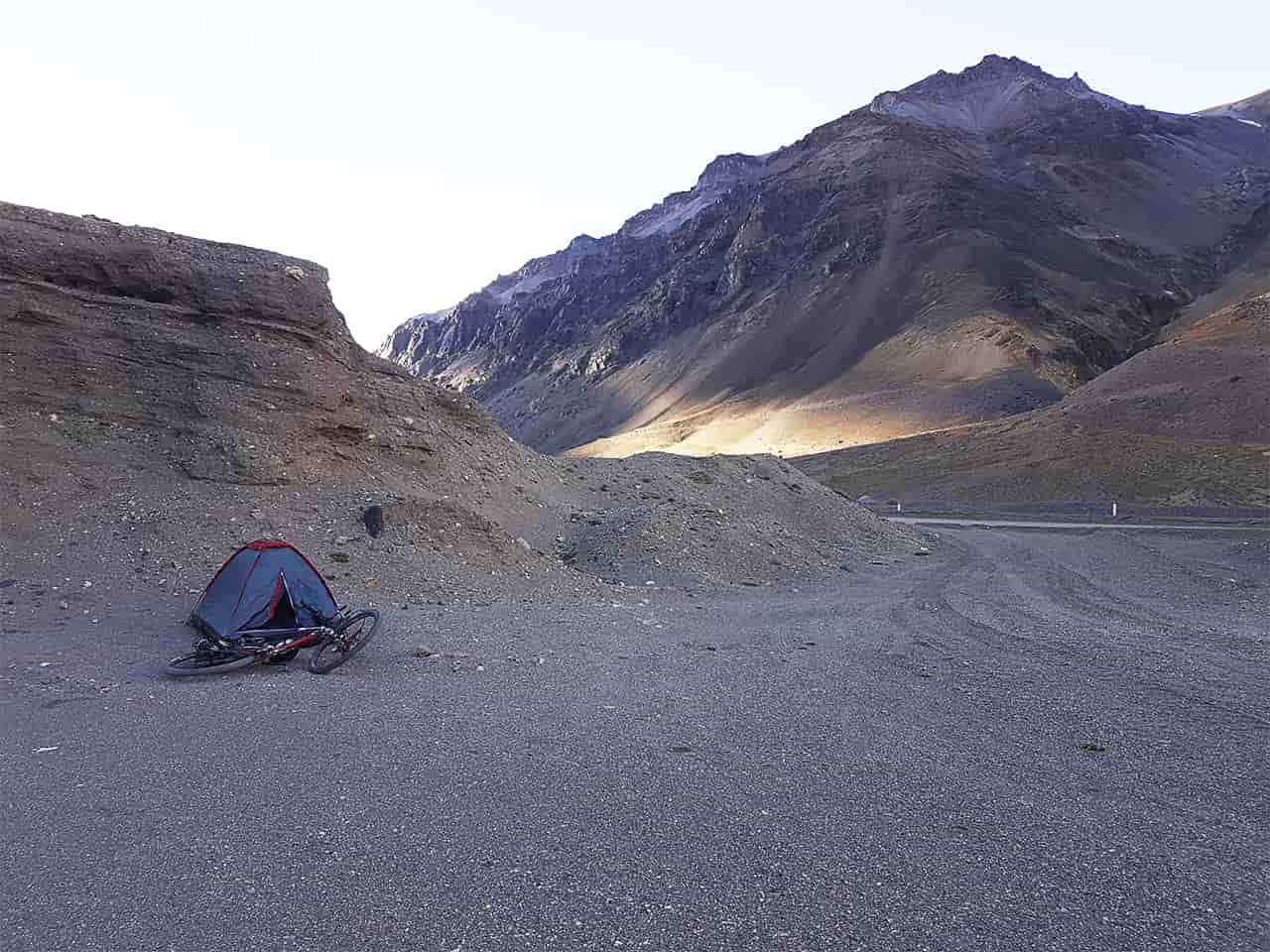 Assumir que ainda não sabe exatamente como vai reagir o seu organismo a 4.700 metros de altura em uma noite a -15°C foi algo que me deu uma margem de segurança para pensar de forma precavida. Não saber se o corpo vai conseguir pedalar os 100 quilômetros de subida em um dia só, dois ou três, também seria. Até por que a equação se torna um pouco mais complexa do que em uma “simples” ultramaratona: aqui tenho que considerar malas de 40 quilos na bicicleta, tenho que levar toda a minha água, se eu errar a conta carrego muito peso à toa (e isso pode me custar não chegar a tempo no destino que planejei) ou então eu morro de sede e outras variáveis infinitas que rodeiam uma aventura autossuficiente como uma cicloviagem.