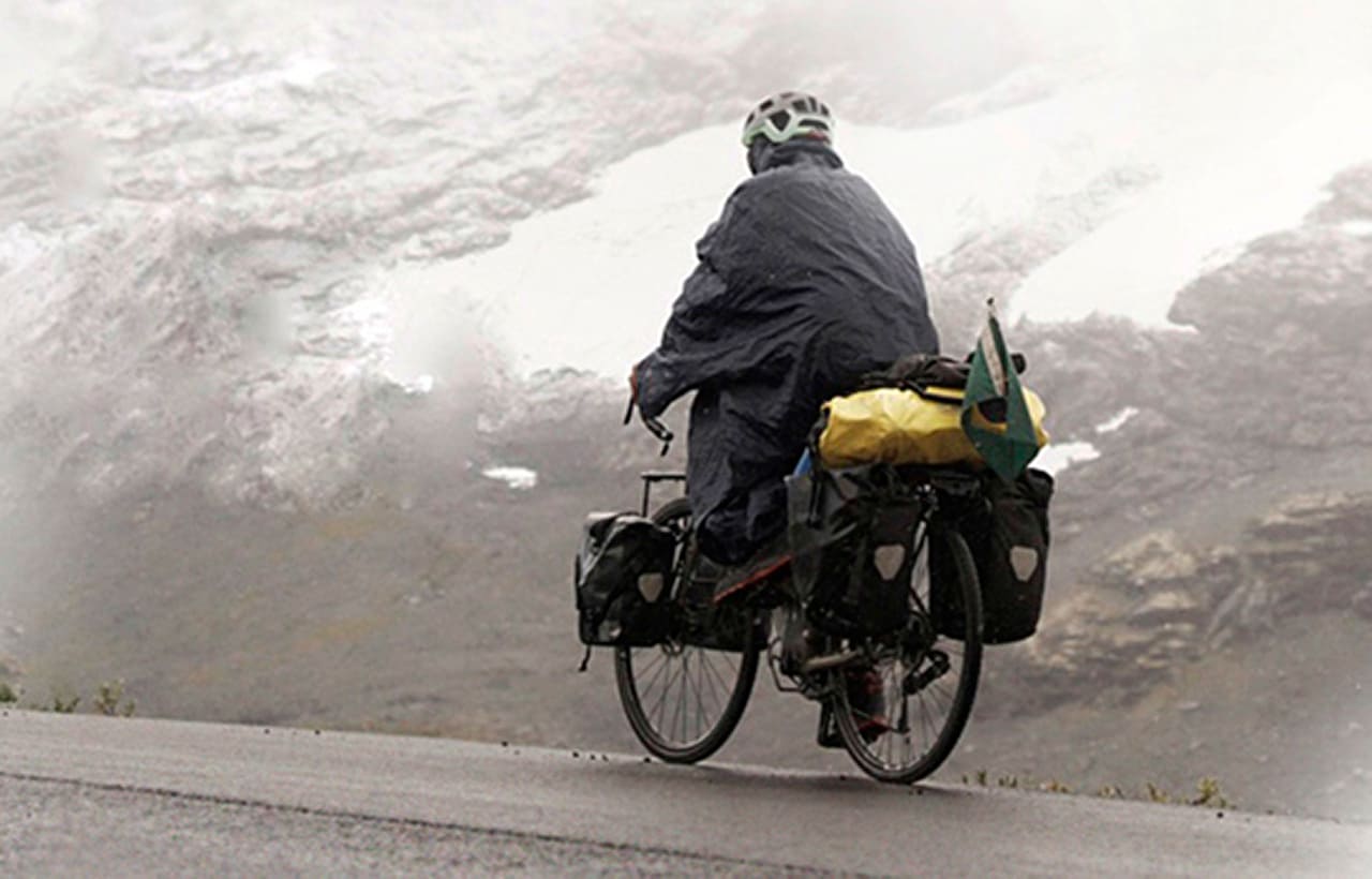 Amanheci acampando de frente para um lago, que não estava congelado na noite anterior. Lancei umas pedras para conferir e elas saíram quicando e fazendo um som que eu ainda não conhecia. Peguei a bicicleta e parti junto com os primeiros flocos de neve do dia. Minutos depois a estrada já estava toda branca e os flocos ganhavam corpo enquanto caíam do céu. Batiam na roupa e se despedaçavam, ou ficavam ali como placas de gelo. Foi a primeira vez que vi neve de verdade e estava ali, bobo, como quem descobre que o mar é salgado. Olhava para trás e via o rastros dos pneus da bicicleta como pegadas de um explorador em uma daquelas expedições polares. É assim que me sinto, por mais que esteja pedalando por estradas e trilhas transitadas.