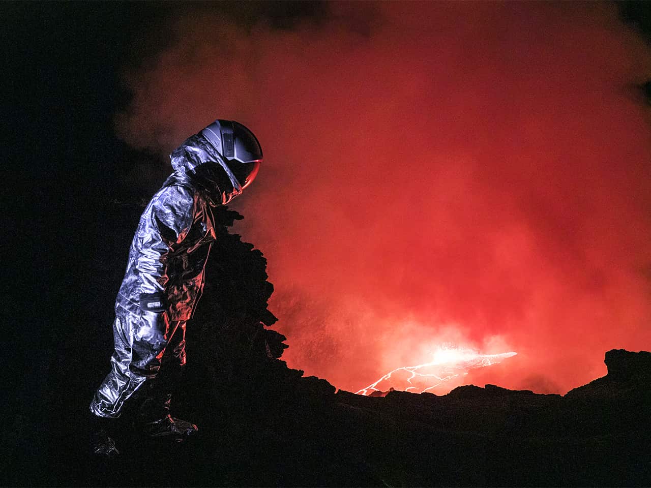 Durante as gravações, o calor era intenso, facilmente alçando os 50ºC. Mas isso seria apenas um gostinho do que estava por vir. Mesmo com a roupa especial, que mandei fazer sob medida pra mim no Canada, em cima da lava o calor era quase insuportável. Ainda tinha a fumaça tóxica saindo da chamada porta do inferno.