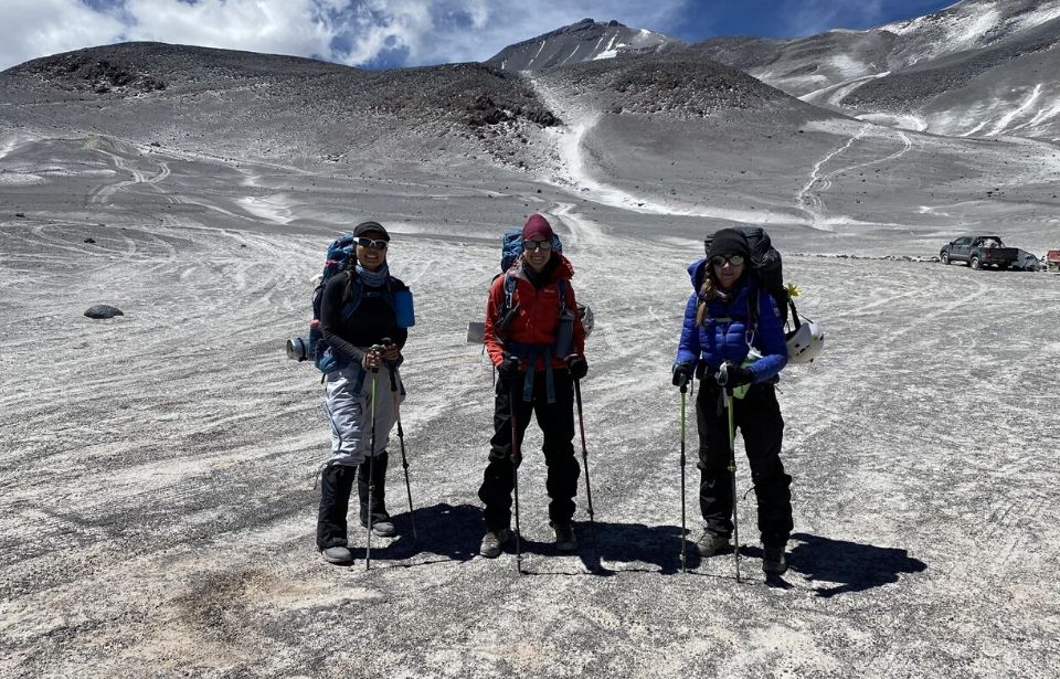 Acampamos no Refúgio Atacama por um dia e de lá partimos caminhando para o refúgio Tejos (5800m) com mochilas pesadas.
