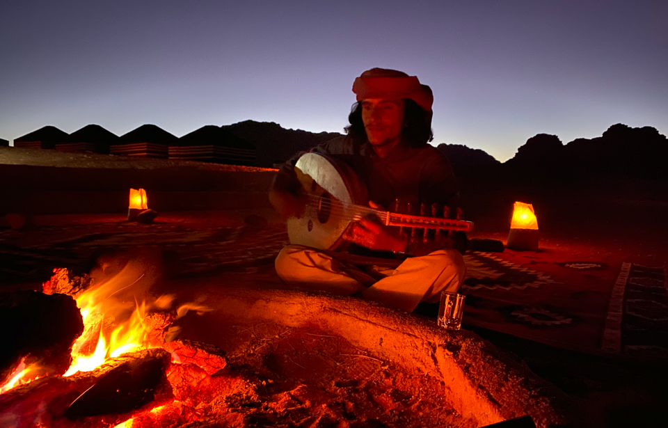 Em Wadi Rum vivi experiências inesquecíveis e intensas: andei de camelo, acampei sob um dos céus mais estrelados que ja vi, jantei acompanhada com beduínos autênticos, os poucos que ainda vivem em cavernas cavadas no arenito. E a conversa estava tao boa que a madeira para a fogueira não deu conta... Ao som do famoso violão árabe de 12 cordas, o Oud, viramos noite a dentro comendo, bebendo e trocando experiencias com nossos amigos beduínos, a luz de velas disfarçava o frio de uma forma mágica.