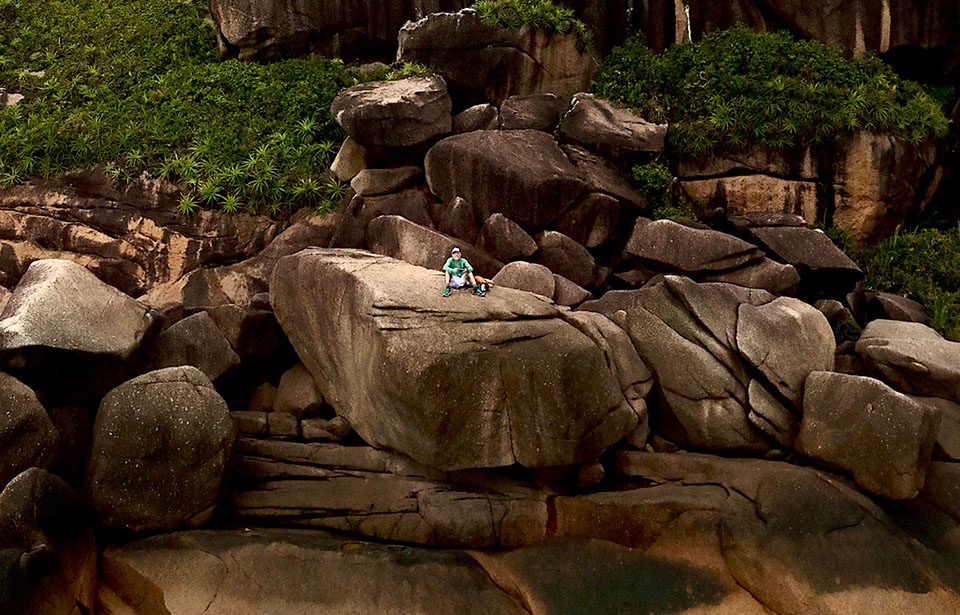 Até ali tudo como previsto: sinal de celular, minha esposa viu onde eu estava e ficou tranquila. Mas foi a partir daí que a porca torceu o rabo. Operadora nenhuma funcionava. E a trilha era uma escalaminhada lenta e sofrida pelas pedras do costão. Divertido? Sim. Perigoso? Mais ainda.